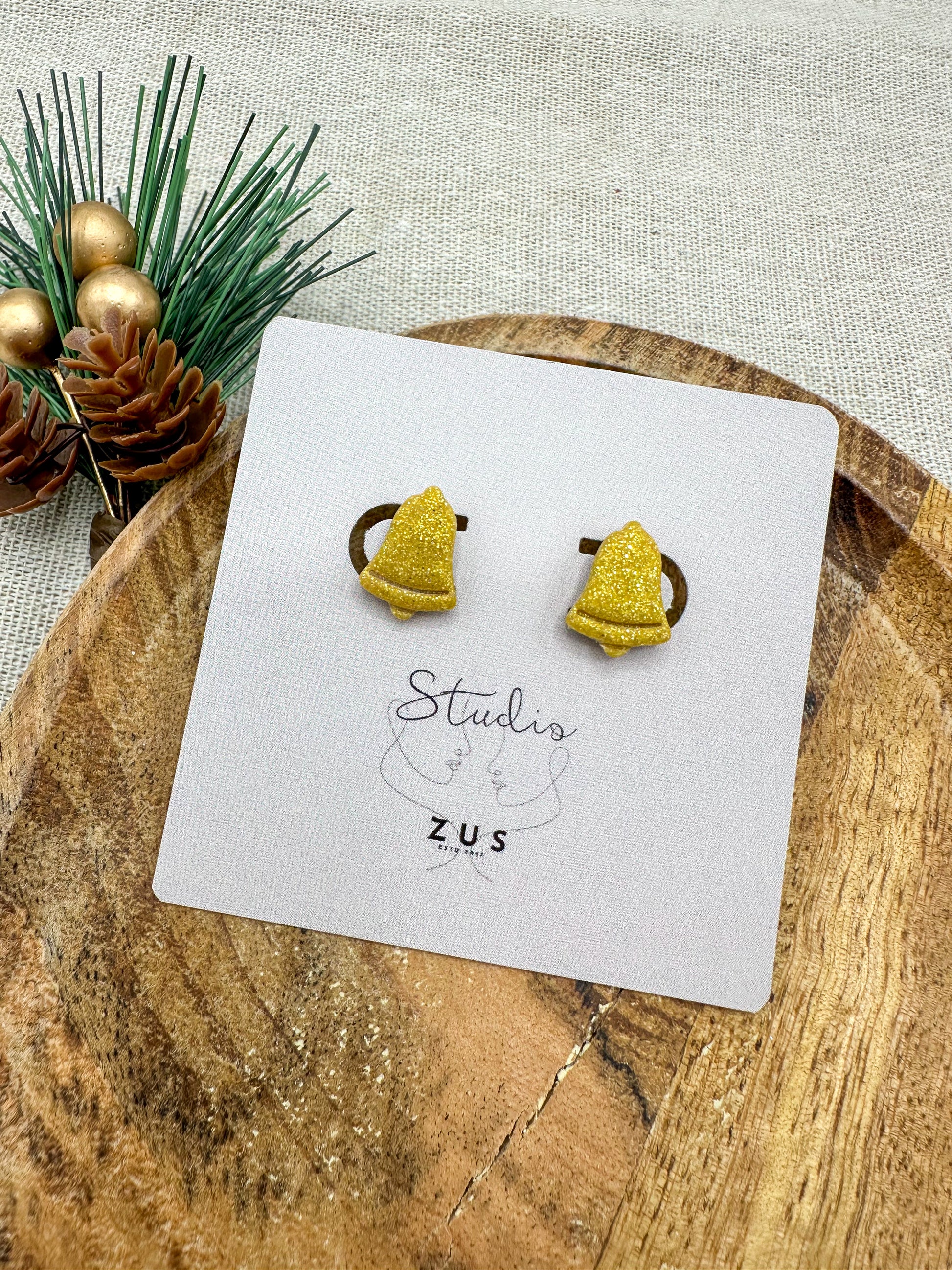 De oorbellen Jingle Bells voegen een vleugje glamour toe aan je kerstoutfit. Hun gouden glitter en ronde vorm maken ze klassiek en feestelijk.
