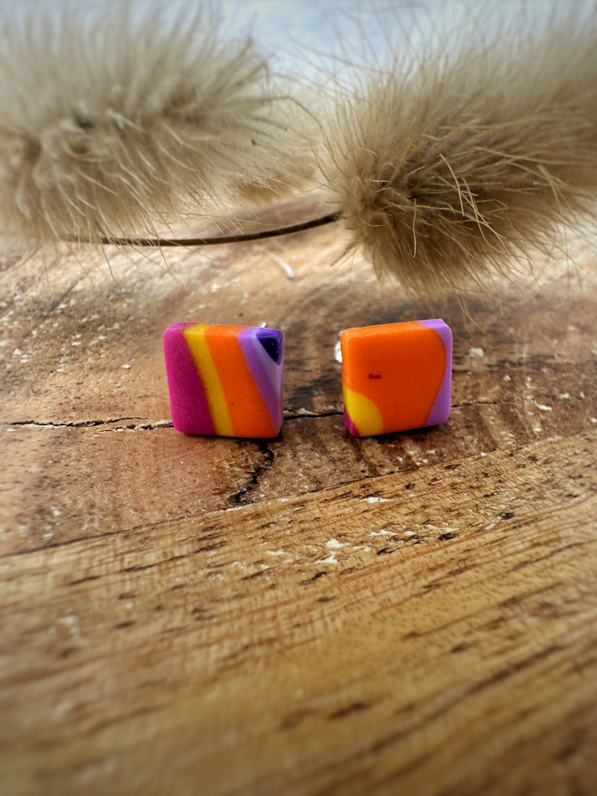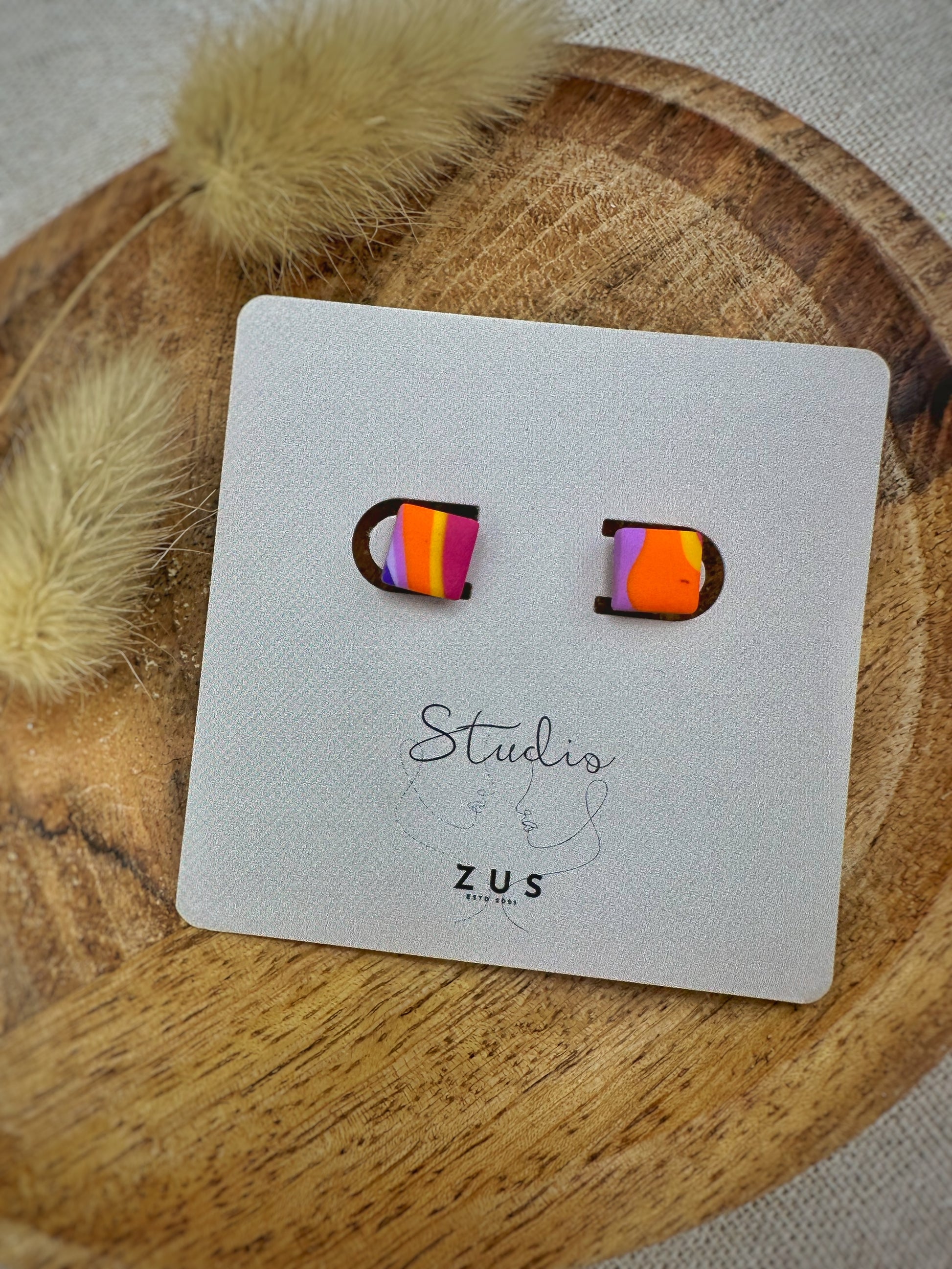 De oorbellen Nola zijn speels, kleurrijk en vol energie. Met hun vierkante vorm en levendig patroon in oranje, roze, geel en paars geven deze oorbellen iedere outfit een vrolijke, zomerse uitstraling. Perfect voor wie houdt van een opvallende en creatieve look.