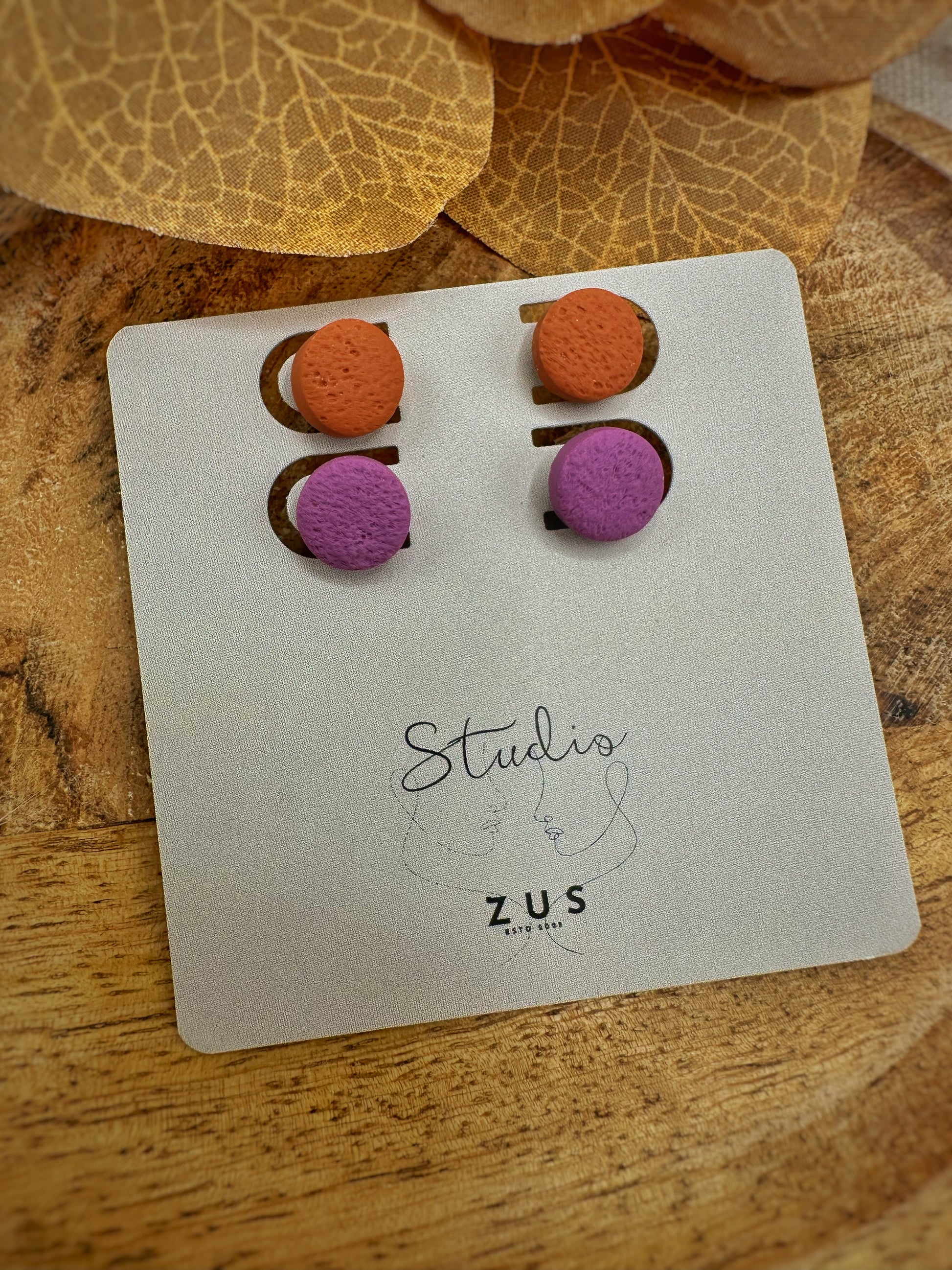 De oorbellen Sophie hebben een speelse en kleurrijke uitstraling. Het ronde design in donker oranje en paars geeft deze oorbellen een warme en opvallende look, perfect om je outfit een vrolijke touch te geven. De combinatie van de diepe tinten maakt ze zowel stijlvol als uniek.