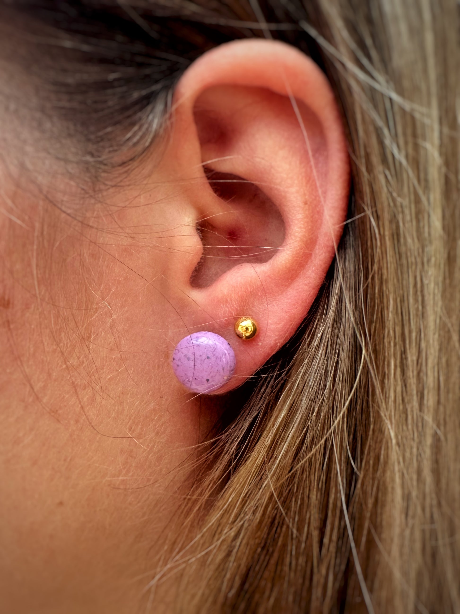 De oorbellen Sophie combineren een speelse uitstraling met een vleugje elegantie. Het ronde design in helder paars en goudkleurig beige geeft deze oorbellen een warme en chique look. Ideaal voor wie een subtiel maar toch opvallend detail aan haar outfit wil toevoegen.